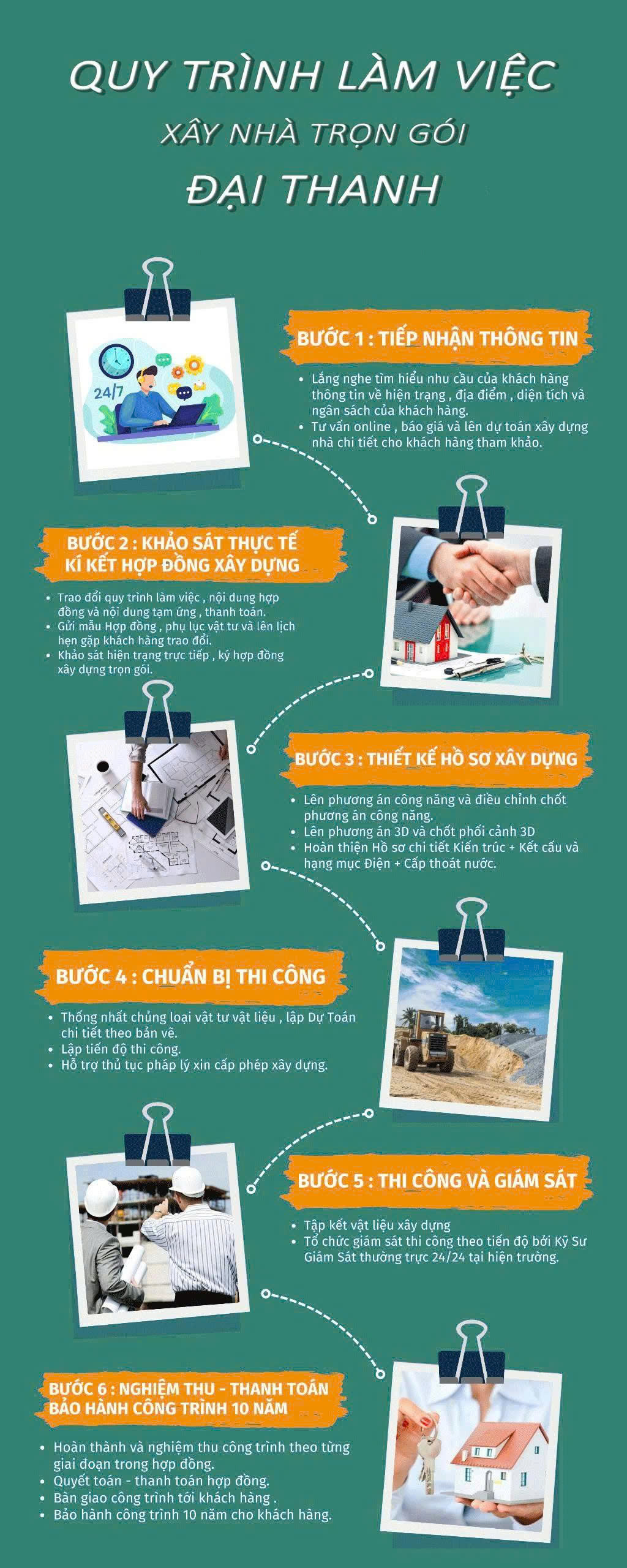 Trong bối cảnh thị trường xây dựng ngày càng cạnh tranh và yêu cầu ngày một khắt khe về chất lượng, tiến độ cũng như dịch vụ, Công ty TNHH Thiết kế Thi công Xây dựng Trọn gói Đại Thanh đã và đang chứng minh bản lĩnh của một thương hiệu tiên phong, khi kiên định theo đuổi mô hình xây nhà trọn gói “chìa khóa trao tay” – từ thiết kế, xin phép xây dựng, thi công thô, hoàn thiện nội thất cho đến bàn giao trọn vẹn công trình.